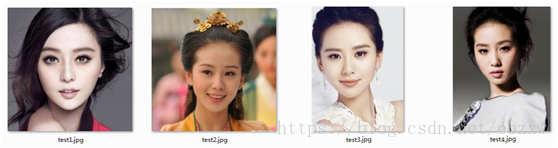 六个候选人特征图片放在girls文件夹中,然后需要识别的人脸图片test1.jpg、test2.jpg、test3.jpg、test4.jpg。下面工作就是检测到test*.jpg中的人脸,然后判断她到底是候选人中的谁。girl-face-rec.py是实现人脸识别的python脚本。