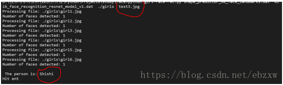 执行命令:python girl-face-rec.py shape_predictor_68_face_landmarks.dat dlib_face_recognition_resnet_model_v1.dat ./girls test1.jpg