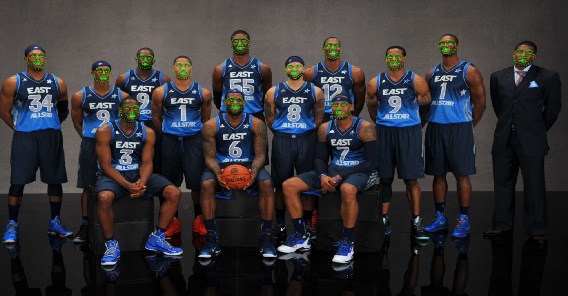OpenCV:利用OpenCV+dlib库实现对《极限男人帮》和《NBA全明星球员》人脸检测与人脸标记