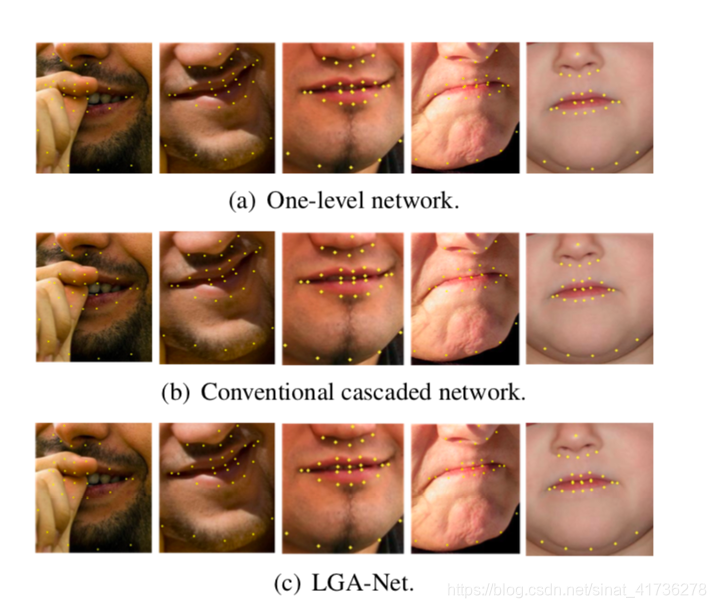 为了得到更鲁棒的在无限制环境下的关键点预测,局部-全局整合网络的第二层自网络将原始图片和来自first level的全局脸部信息共同作为输入。在这项工作中,关键点坐标从上一级网络中获得选择作为高层次的全局特征。这种做法的好处是,在训练过程中,全局特征可以直接从训练数据中获得,而不是从以前的网络中获得,这样每个子网络都可以独立地训练和级联。