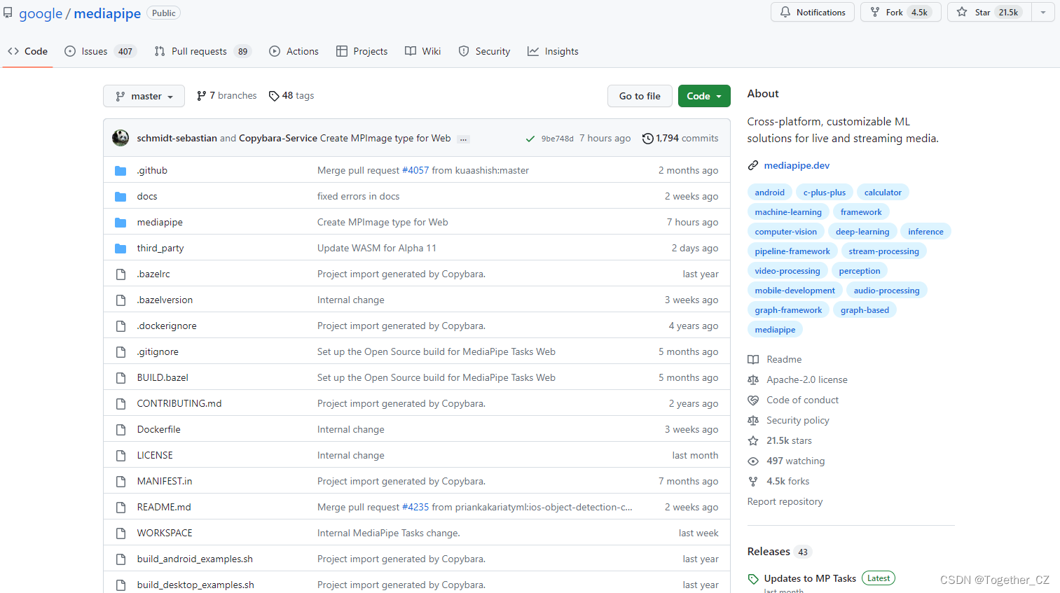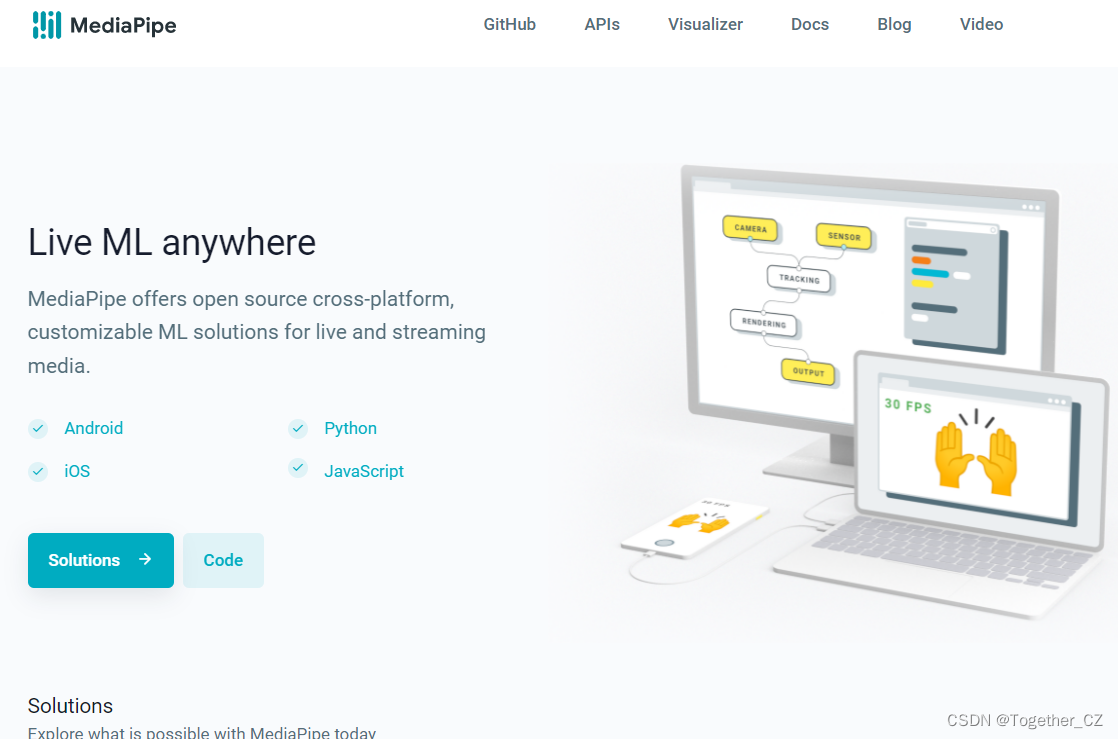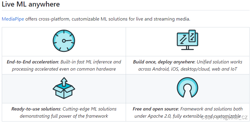 Mediapipe是google的一个开源项目,支持跨平台的常用ML方案。项目在这里,如下所示: