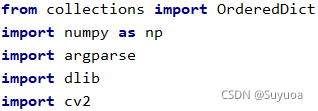 我们这里用到了collections中的OrderedDict,这个功能是创建有序字典,collections是 python 自带的库,dlib中有检测人脸68点的功能,我们直接使用写好的函数