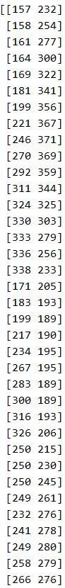 这个值是68,之后我们使用np.zeros创建全0的numpy.ndarry,大小为(68,2),我们打印出来看一下