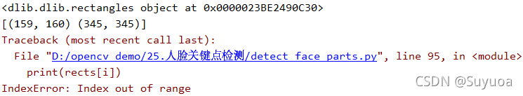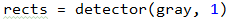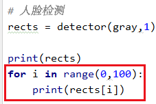 发现只有里面只有一个值,这个值是一个矩形的坐标,这个是我们图像中人脸的坐标
