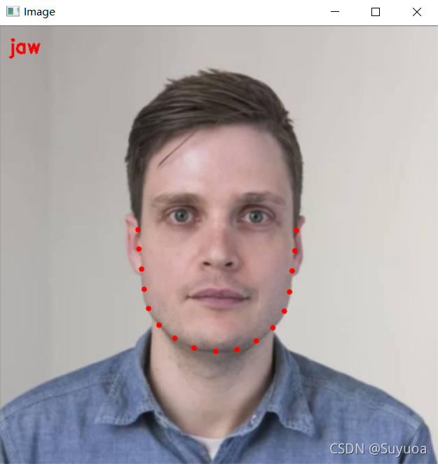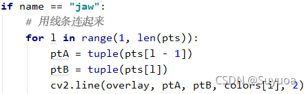 我们七个区域中,唯一不是闭合图形的就是下巴jaw,如果判定是下巴区域,我们就用点给它连起来