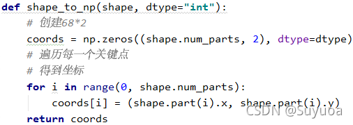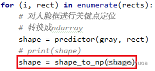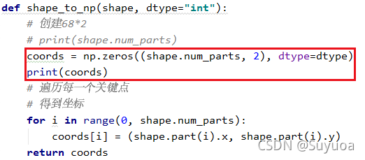 之后我们遍历68次,然后使用shape.part()取出每个点的坐标,然后赋值给coords对应的位置