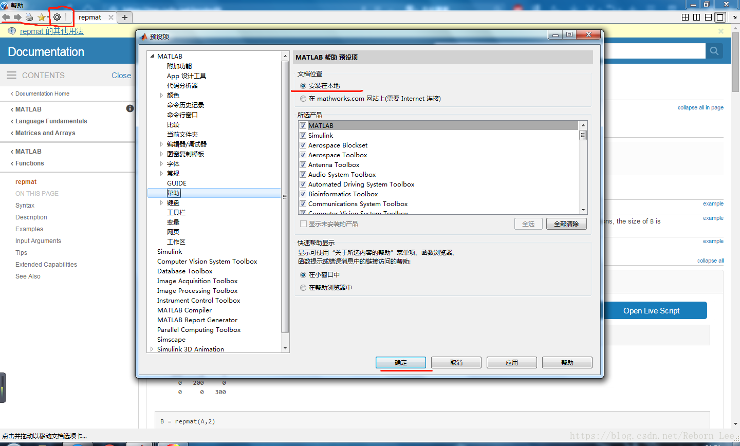 这个时候,你可以在 命令 框中输入:doc repmat试试doc这个指令的功能吧。