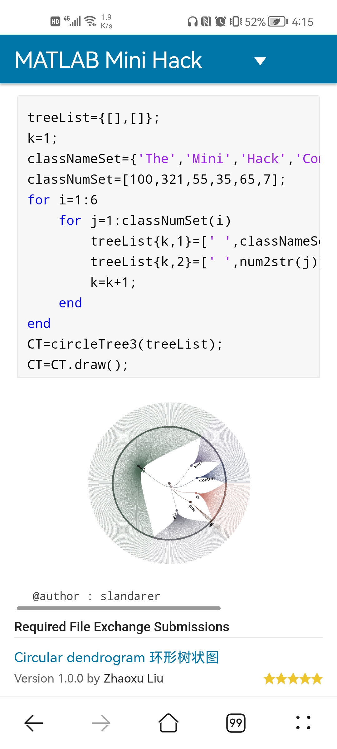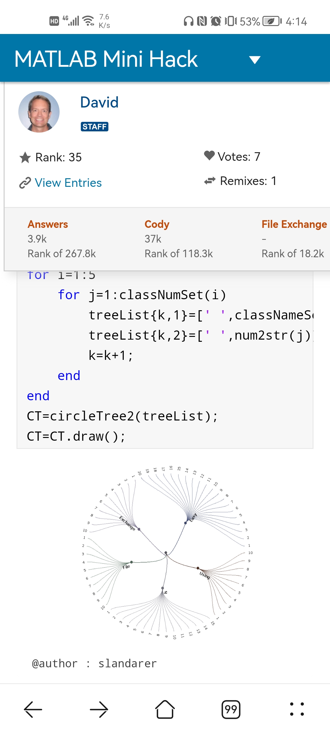 hiahiahia在浏览过程中发现有几个人引用并以我写的工具函数为基础作图进行了参赛,甚至有的工具函数被mathworks工作人员引用了:
