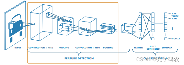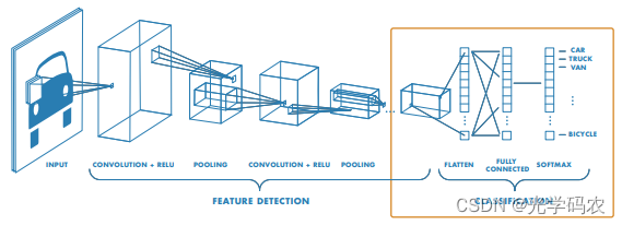 CNN 架构的最后一层使用 softmax 函数提供分类输出。