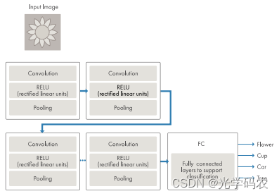 这些层对数据执行三种类型操作中的一种,即卷积、池化或修正线性 单元 (ReLU)。