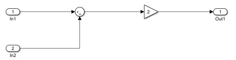 这个 模型 很简单,输出Out1等两个输入信号Input1和Input2之和再乘以增益k(这里先用2代替),即: