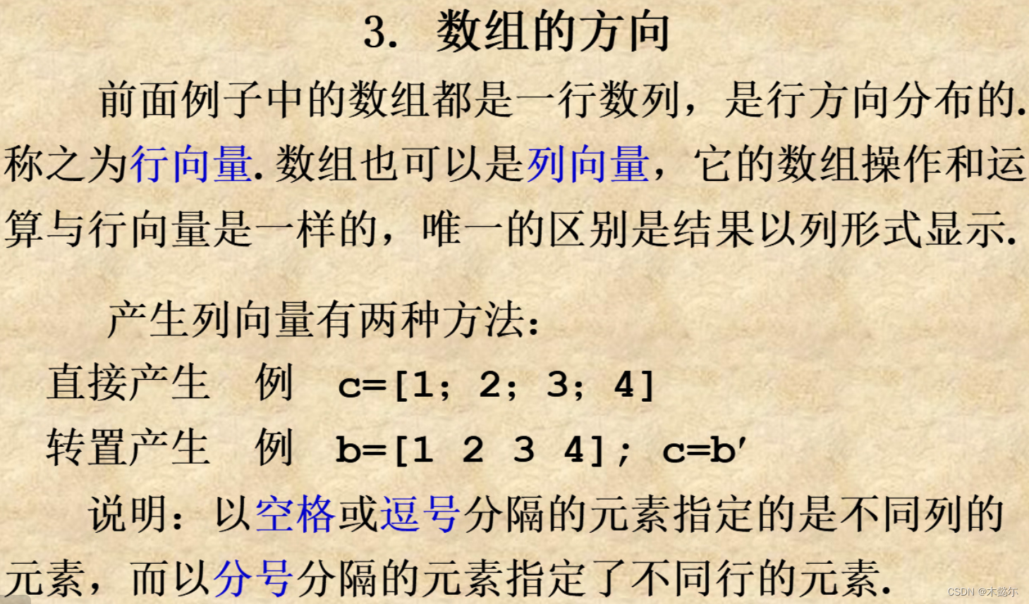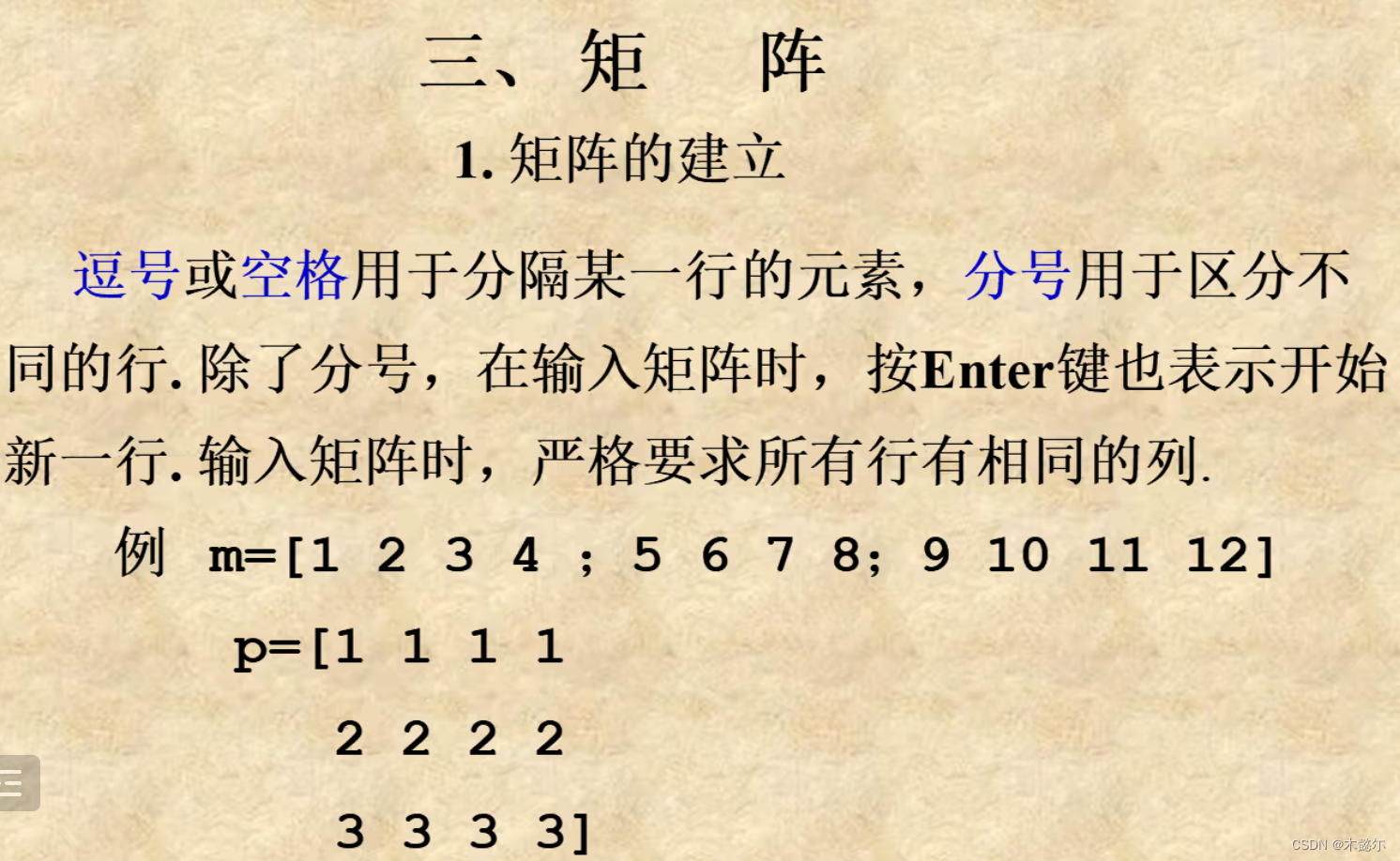 (1)MATLAB的每条命令后,若为逗号或无标点符号,则显示命令的结果;若命令后为分号,则禁止显示结果.