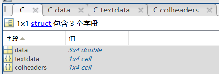 C = textscan(fileID,'%d %f %f %f','headerlines',1); % %d有符号整数 %f双精度浮点数 %s读取以空白或分隔符分隔的文本