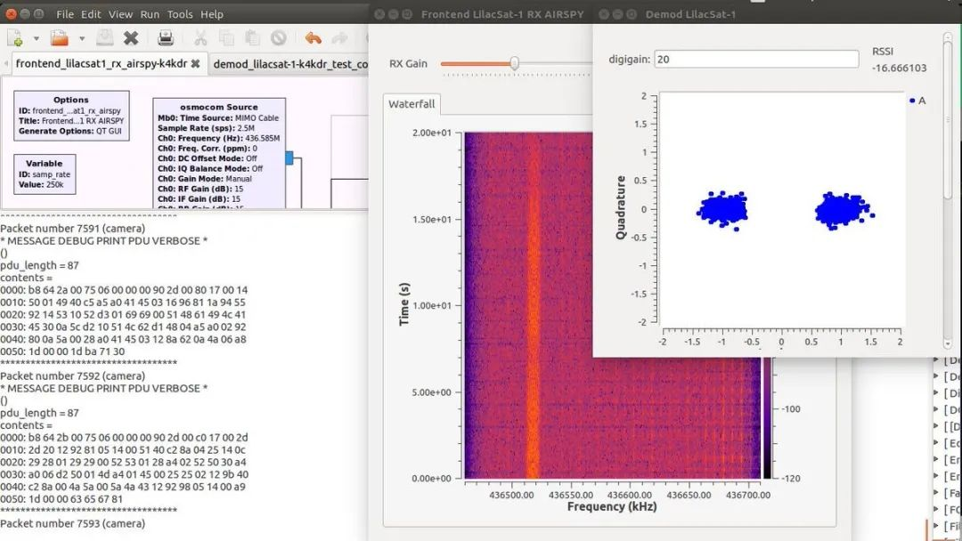 GNU Radio是一个对学习,构建和部署软件定义无线电系统的免费软件工具包,可通过Python或类似于Simulink/Labview的图形化界面调用。紫丁香、龙江等卫星的业余无线电接收解调软件就是在GNU Radio基础上开发并开源发布的。