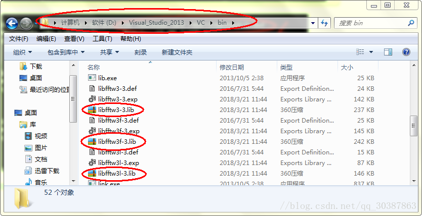 下面的链接是我下载的fftw库,版本为 fftw-3.3.5-dll64 ,64位的