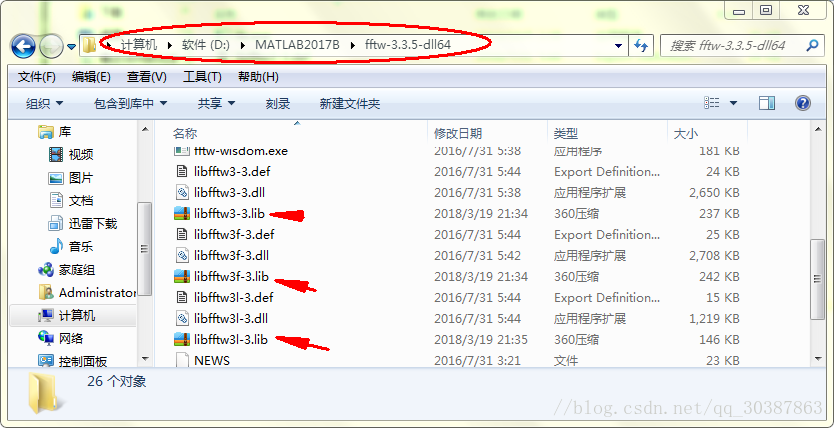 3.2、找到 .def 文件所在的位置, .def 文件就在1.4节所说的fftw库所在的文件夹https://www.gofarlic.com\MATLAB2017B\fftw-3.3.5-dll64里,如下图:
