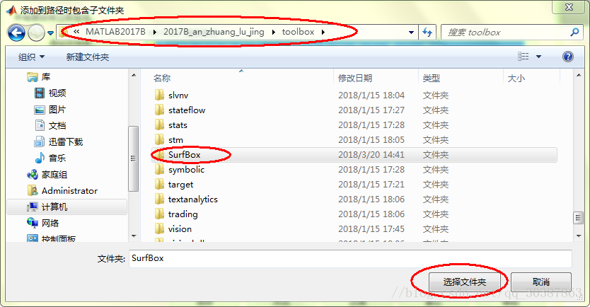 下载完SurfBox工具箱之后,我将它解压到 https://www.gofarlic.com\MATLAB2017B\2017B_an_zhuang_lu_jing\toolbox