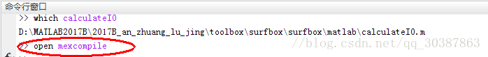 5.1、在matlab命令窗口中输入 open mexcompile 回车