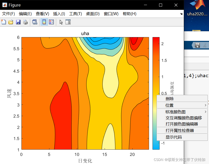 例如这张uh a图 ,首先使用函数caxis([-1.2,2.2])编辑colorbar上下限,打开后右键颜色编辑器选择心怡的颜色。然后用下面的 代码 存储这种配色方式方便下次使用(下次使用时可变上下限)。