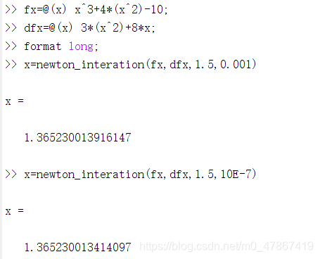 x1=x0-fun(x0)/dfun(x0); %牛顿迭代公式