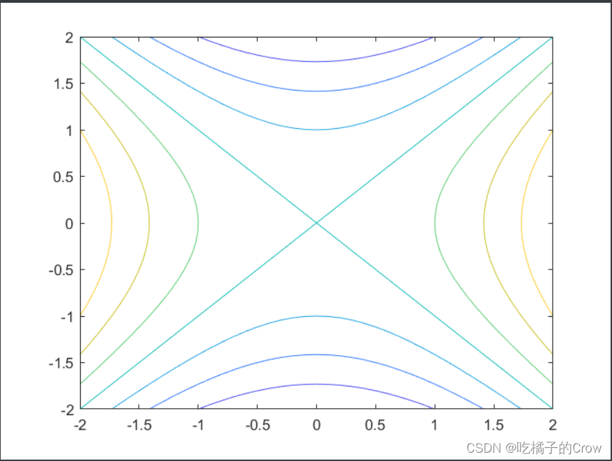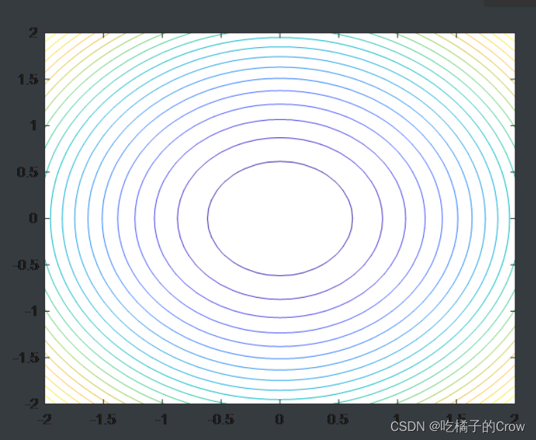 [X,Y]=meshgrid(-2:0.1:2);>> Z=X.^2+Y.^2;>> contour(X,Y,Z,20)