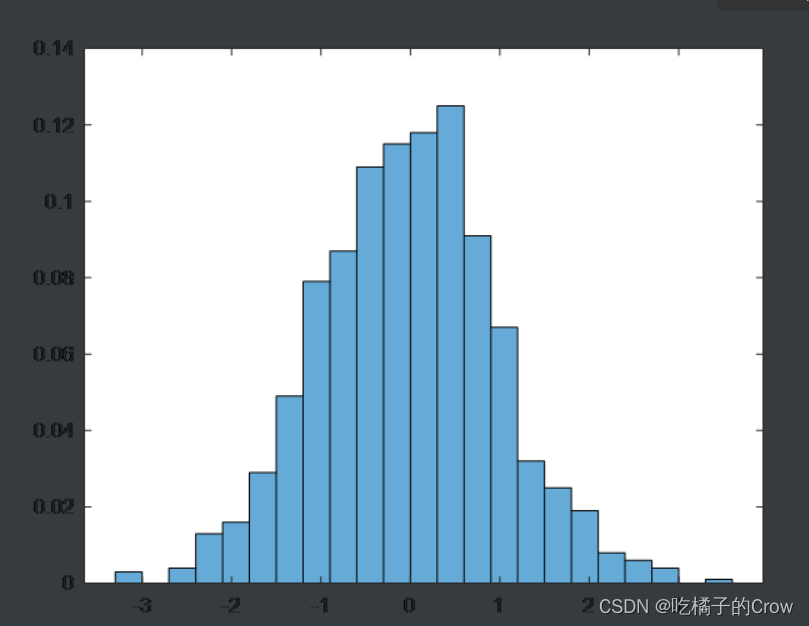 x=randn(1000,1);histogram(x,'Normalization','probability');//对数据进行了概率密度归一化