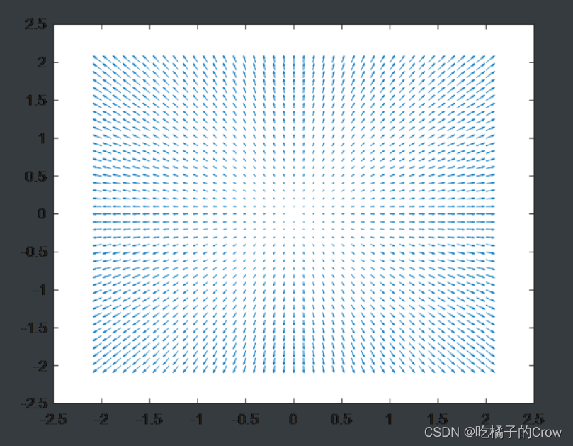 [X,Y]=meshgrid(-2:0.1:2);>> Z=X.^2+Y.^2;>> contour(X,Y,Z,20)>> [DX,DY]=gradient(Z,0.25,0.25);>> quiver(X,Y,DX,DY)