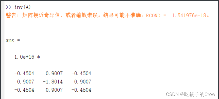 用矩阵除法解下列线性方程组,并判断解的意义,用矩阵乘方进行验算
