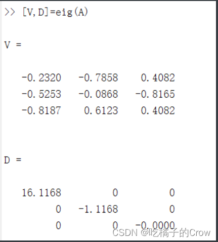>> %根据线性方程组得到矩阵A,b>> A=[1 -1 1 -1;-1 1 1 -1;2 -2 -1 1];>> b=[1;1;-1];>> %只有当矩阵A的秩和增广矩阵(A,b)秩相等才有解答>> if rank(A)==rank([A,b]) %使用rref求增广矩阵行最简 rref([A,b])else disp('次方程组无解')endans = 1 -1 0 0 0 0 0 1 -1 1 0 0 0 0 0正交变换--将二次型化为标准型