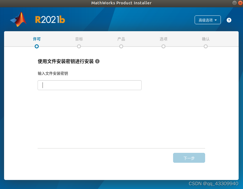 3)选择“高级选项”->“我有文件安装密钥”->“是”->下一步